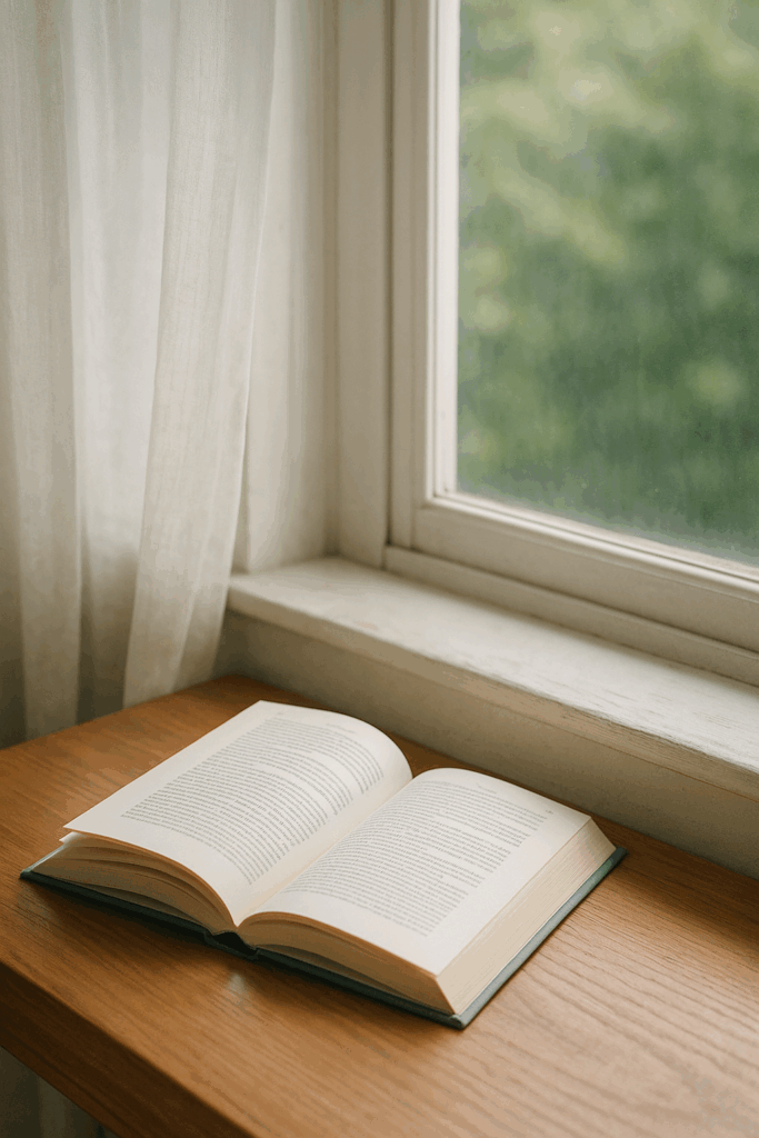 – ことばと自然光が重なる静かな読書時間。 🌞 窓辺にひろがる午後のひととき 静かな午後、窓からやわらかな光が差しこんでいる。ページをめくる音が部屋に小さく響いて、本の世界と現実がゆるやかに重なりあう。 窓の外では、木の葉がふわりと揺れ、鳥の... -