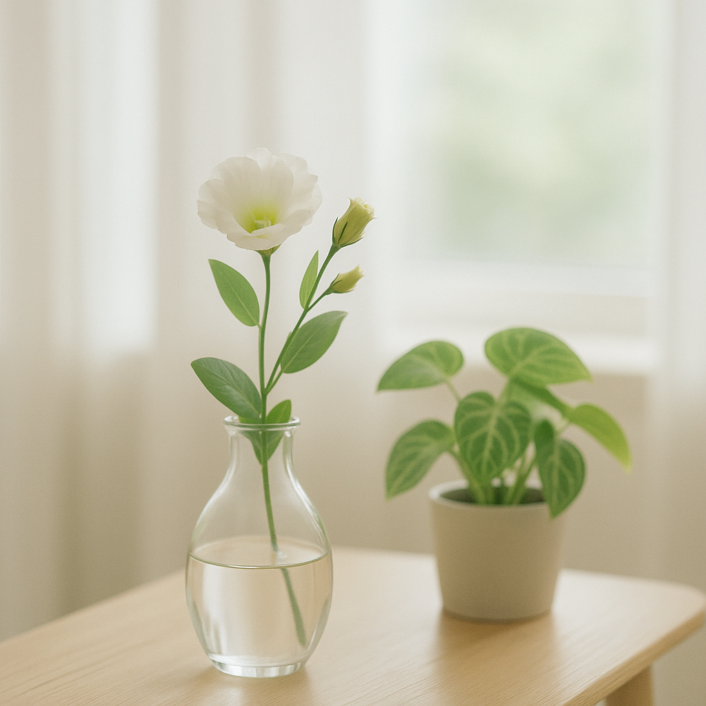 🌿 部屋に花と緑を招く日 – 小さな自然が暮らしをやわらかくする。 🍃 窓辺にひとつ、花を 朝の光が、そっとカーテンを透かして入ってくる。窓辺に置いた小さな花が、その光を受けてきらめいた。それだけで部屋の空気が、やわらかく変わるような気がしたん... -
