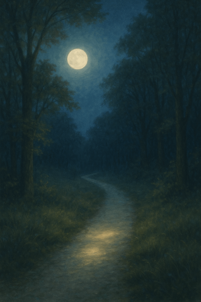 – 夜のやさしさに導かれて歩く道。 🌫️ 夜道の情景月が高く昇るころ、小径を歩くと足元にやわらかな光が落ちている。木々の影は細く長く道にのび、夜風が頬をかすめて通り過ぎていく。街のざわめきは遠くに消え、耳に残るのは自分の足音だけ。 その音が響く... -